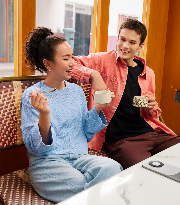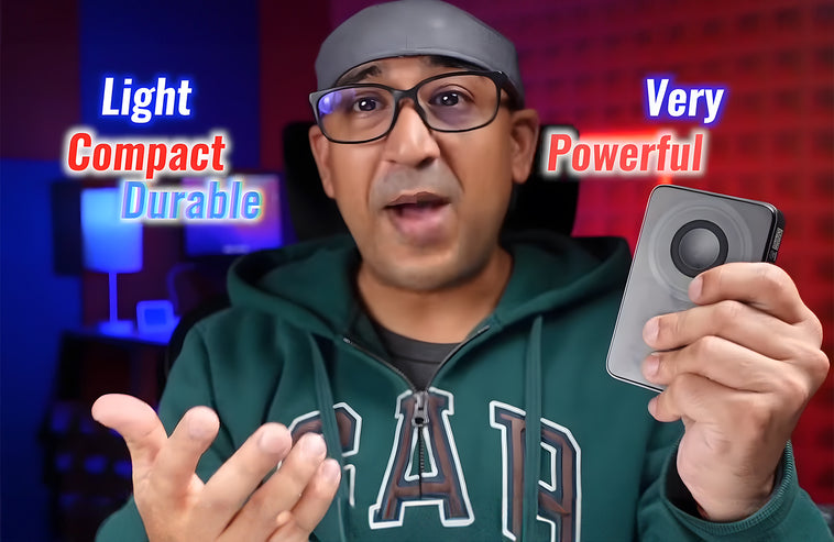 Use the dual Type-C cable as a handle and skip extra cords on the go.