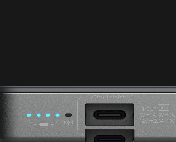 Experience unparalleled convenience and speed with dual Type-C ports that support 30w input and output.