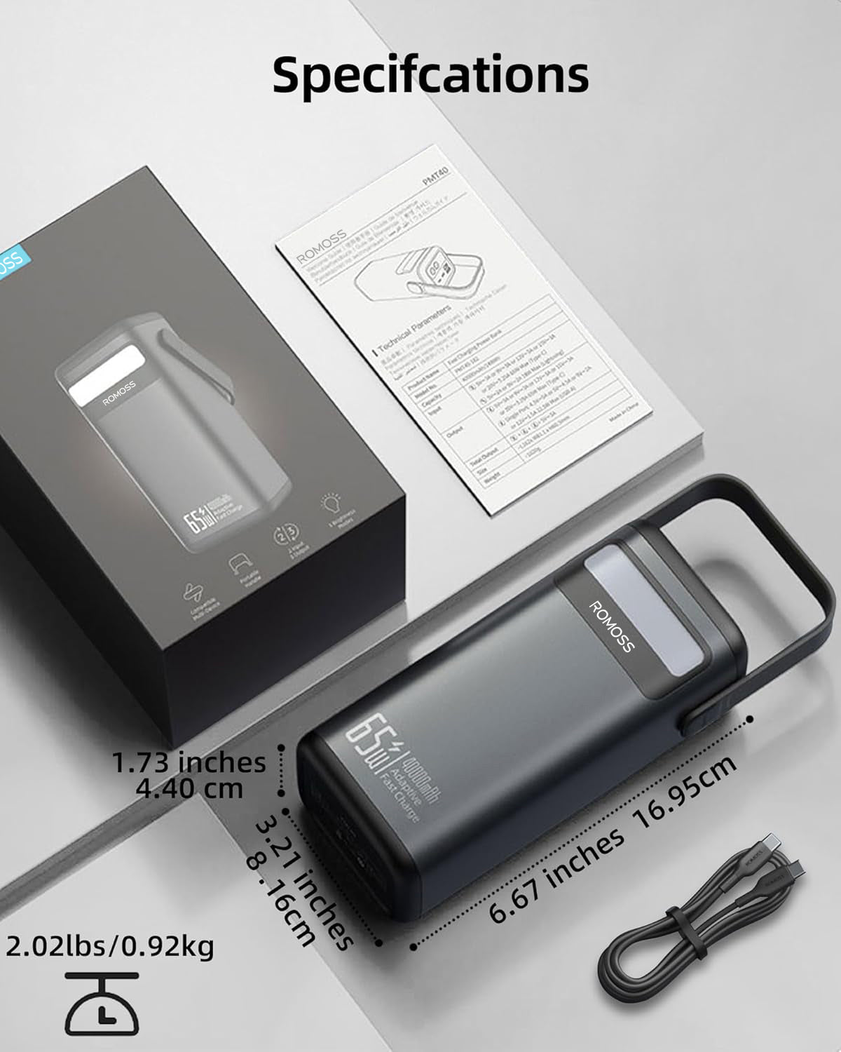 What You Get: A 40,000mAh power bank, a 65W fast charging USB-C to USB-C cable, and a user manual.