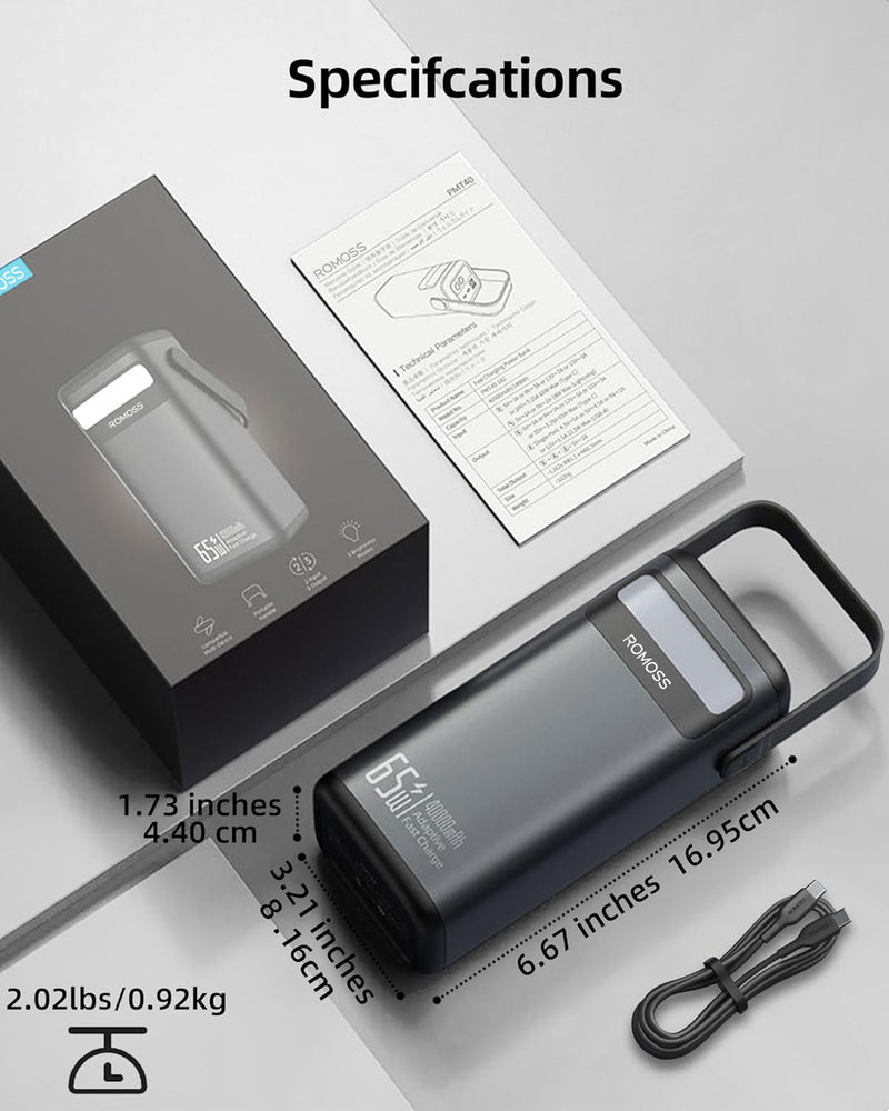 Unleash the Power of Speed: Experience the convenience of rapid charging with the 65W output. Perfect for laptops, smartphones, tablets, and more, our power bank is designed to keep you connected and productive on the go.