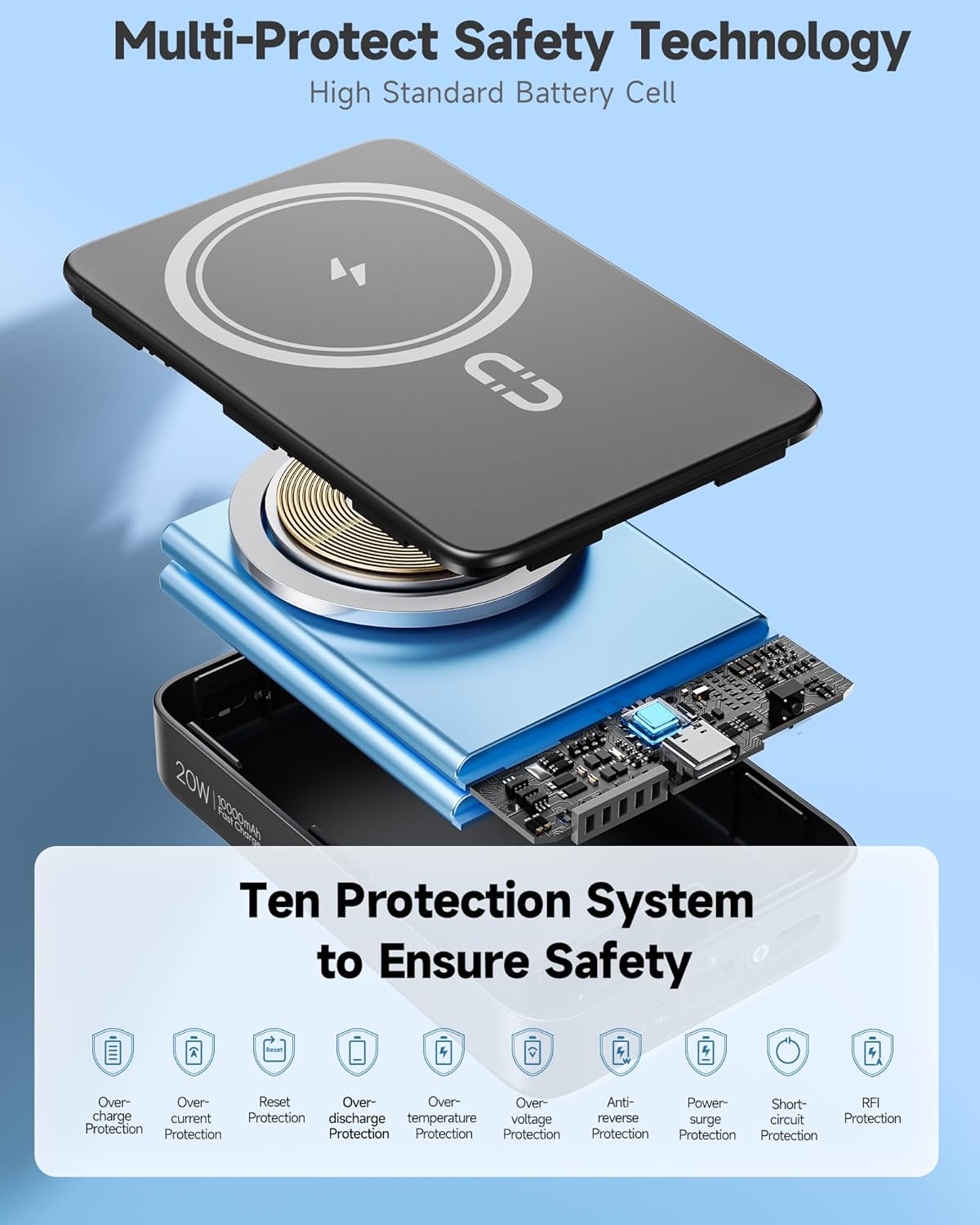 Enhanced Safety Features: This battery pack for iPhone comes with five layers of protection, including safeguards against overcharging, overheating, and short circuits, ensuring your devices are safely charged.
