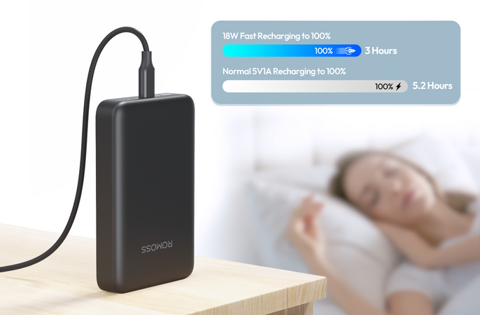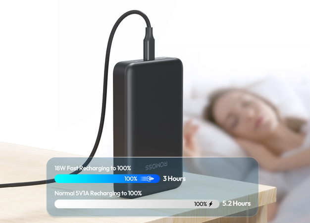 Fully recharge your power bank in 3 hours with 18W fast charging. Ideal for quick turnarounds, keeping you powered and ready for work without long waits.