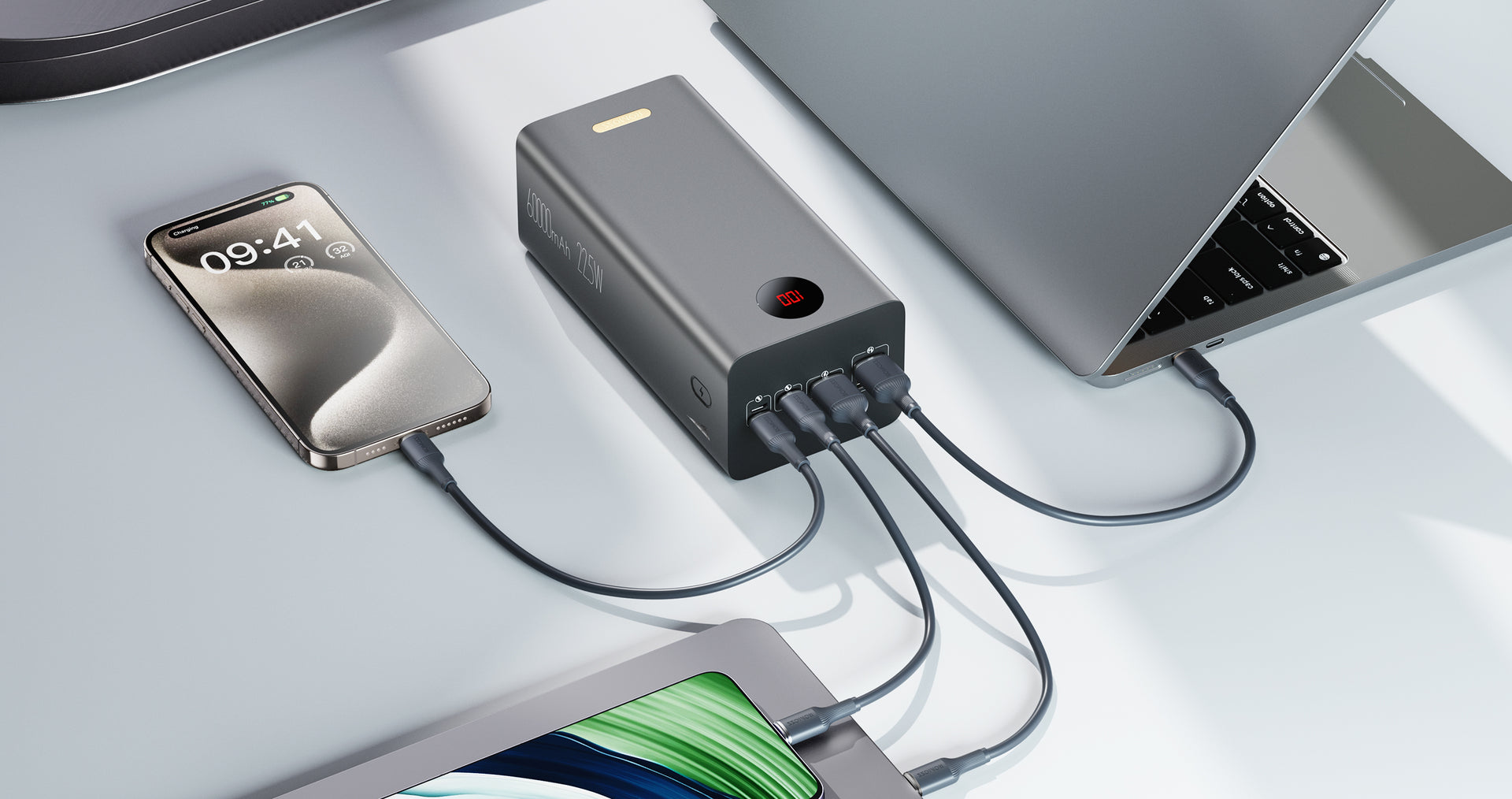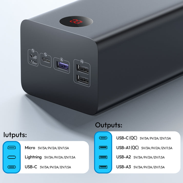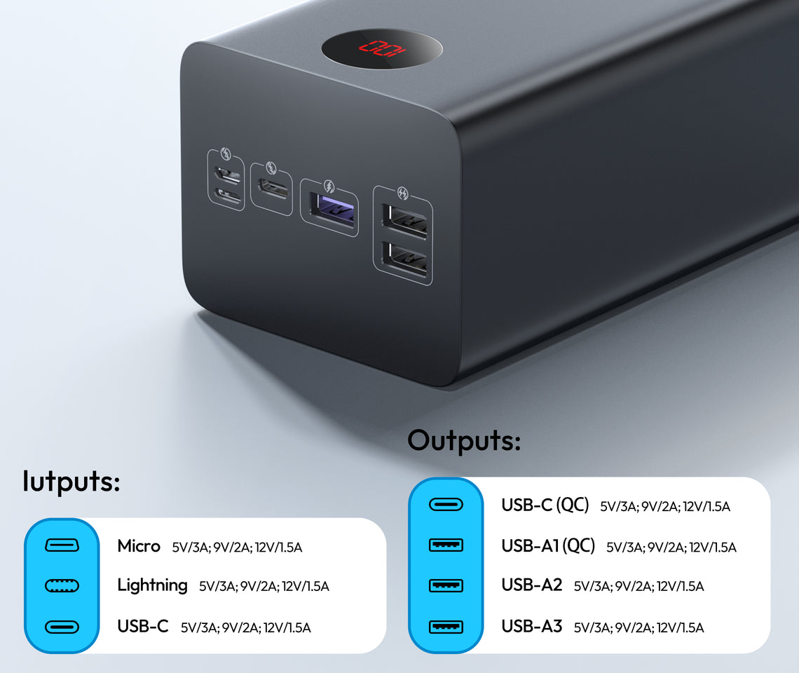 A convenient and reliable power solution for your life on-the-go, with a substantial 60000mAh of charging power and 4 output ports for almost any device-charging need.
