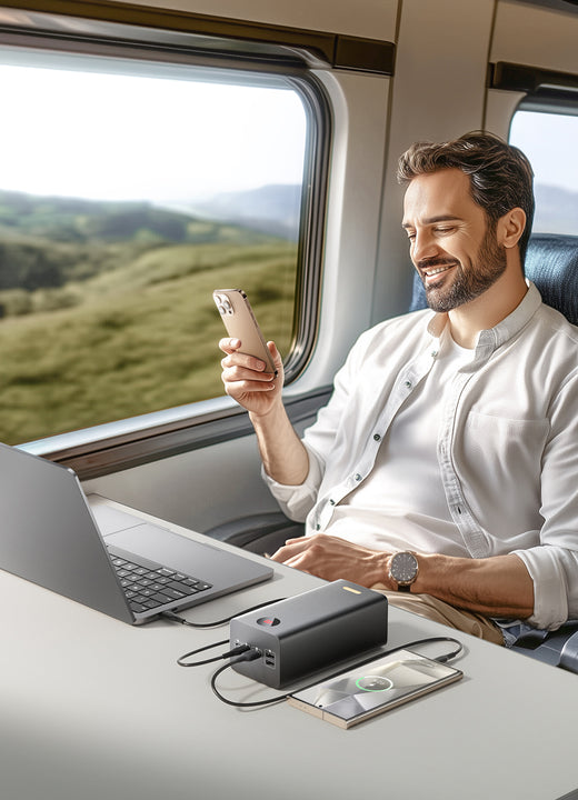 Travel confidently with ROMOSS Titan 27 power bank, approved for air travel. Enjoy extended device usage during long flights and layovers.